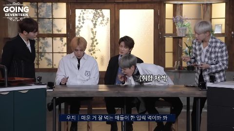 [GOING SEVENTEEN 2020] EP.1 2020 : MYSTERY MYSTERY #12020-01-27 13:10GOING SEVENTEEN그럼 아직 정확히 뭘 먹는지 모르는 거네?1:45그나저나그나저나이나저나저나저나1:57괴식에 대한 숨길 수 없는 기대감2:30찹채 선호3:528kg 아령 포크로 찹채 먹기 도전4:15도겸이 저거 잘 어울린다 안대랑5:34그것도 부러뜨리면10:26블루베리 김치전 냠냠14:04취향 저격 불닭 김치전14:50동생들 격려15:22청양고추 김치전도 냠냠16:37녹차 아이스크림 김치전 이건 뭐 자주들 해먹곤 하죠16:50너어무 맛있겠다22:54